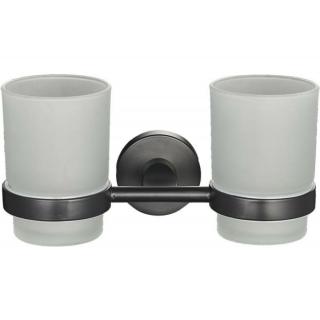 Стакан для зубных щеток двойной стекло/металл настенный Черный 20568