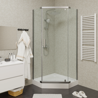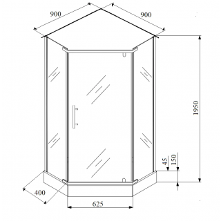 Ограждение душевое 900*900*1950 пентагональное стекла прозрач хром БЕЗ ПОДДОНА CHIKA CERUTTI ZP91 Код 00-00214349 В наличии 26 680,00 ₽ В корзину