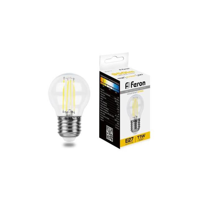 150,00 ₽ В наличии В корзину Информация Артикул E27 11W Код 00-00218889 Категория каталога Лампы светодиодные Лампа светодиодная филамент FERON LB-511, G45 (шар малый), 11W 230V E27 2700К (белый теплый), рассеиватель прозрачный 950Lm, угол рассеивания 270°, 75*45мм